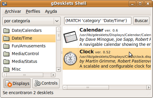 gDesktlets es un conjunto de pequeñas aplicaciones que se colocan en el escritorio para crear mayor vistosidad y funcionalidad extra. Con él pueden añadirse relojes de diferentes tipos y formatos, calendarios, visores de estado del disco duro, temperatura y uso de CPU, una barra de lanzadores animada, controles para reproductores multimedia, estado del tiempo, marcos de fotos, notas adhesivas, etc.