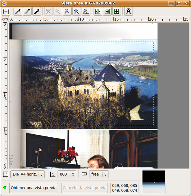 Para realizar una captura simple, nos interesan únicamente la ventana principal, rotulada con el nombre xsane, seguido de la versión del programa y de la ventana de Vista previa.