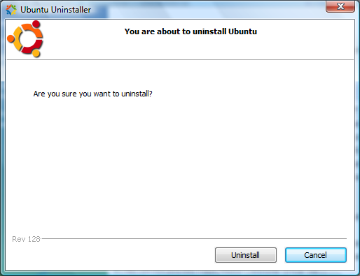 Aparece entonces la ventana del desinstalador de Ubuntu. Haga clic en Uninstall
