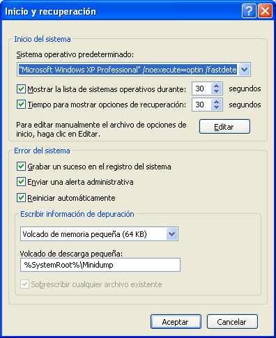 En la ventana de inicio y recuperación pulse en botón Editar.