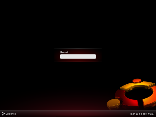 Se protege así la confidencialidad de los datos y la seguridad del propio sistema. De modo que Ubuntu le pedirá siempre que introduzca su nombre de usuario y su contraseña. Cumplimentando ambos campos (tenga cuidado pues se distingue entre mayúsculas y minúsculas) se cargará el entorno gráfico y accederemos a nuestra área de trabajo.