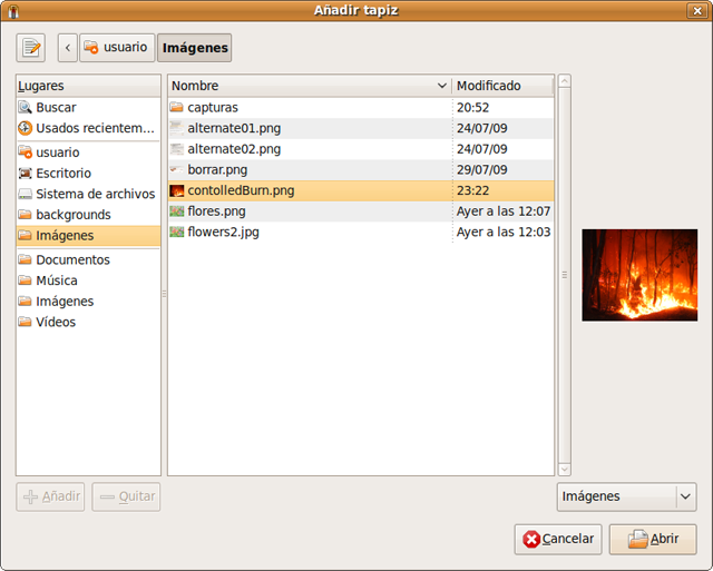 Todos los cambios que hacemos sobre el fondo de escritorio tienen efecto inmediato lo que va muy bien para ir probando sin perder el tiempo.
