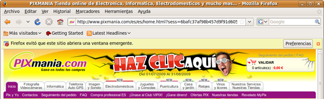 No obstante, cuando un sitio web intenta abrir una ventana emergente, un mensaje en la parte superior de la pantalla nos avisa de esta circunstancia y, pulsando sobre el botón Preferencias podemos configurar el comportamiento de Firefox ante las ventanas emergentes procedentes de ese sitio web en particular o en general.