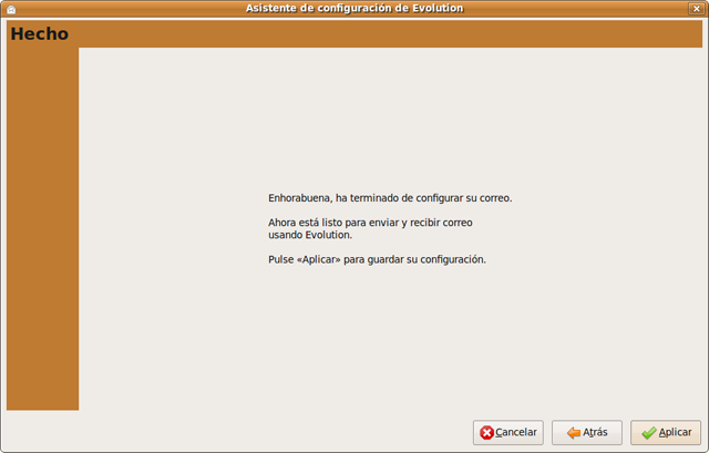 Un alentador mensaje nos informa que ya tenemos configurada nuestra cuenta. En la última pantalla pulsamos en Aplicar para guardar los cambios.
