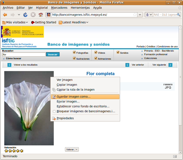 con el botón derecho sobre la imagen para mostrar su menú emergente y elija Guardar