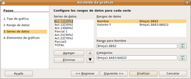 Ahora es donde elegimos qué series de datos necesitamos representar y cuáles no. En nuestro caso, eliminamos todas las columnas situadas bajo el campo Series de datos y dejamos sólo TOTAL.