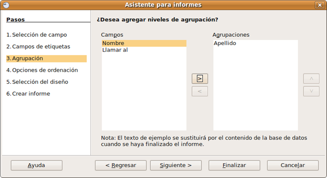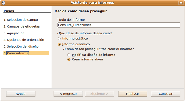 Etiquetaje de los campos. El nombre de los campos puede ser bastante críptico. Por ello puede especificar una etiqueta más legible para cada uno de ellos y será así como aparezcan en el informe. Es similar a los "alias" de las consultas.